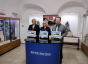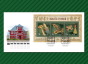 Блок состоит из трёх марок, представляющих экспонаты из коллекции музея: навершие рукояти и перекрестье меча, пряжки портупейные, разделитель уздечных ремней и колокольчик.