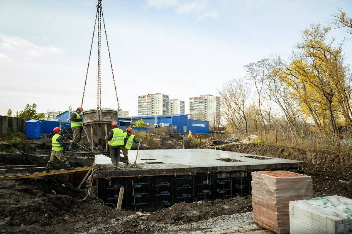 На сегодня рабочие выполнили монтаж нулевого цикла и закрыли бетонной стяжкой перекрытие нулевого этажа.